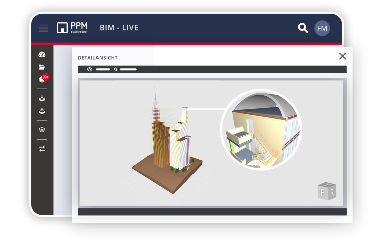 The PPM Raum is a BIM-compliant Common Data Environment (CDE) according to DIN EN ISO 19650 and DIN SPEC 91391 and offers participants interactive, convenient access to the model data directly in the browser.