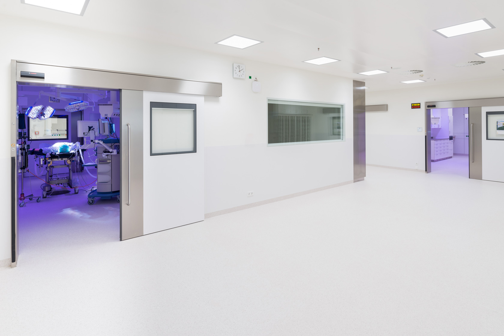 To ensure medical care in E06, an external sterile goods lift is being built on the north side, connecting the central sterilisation unit on level 01 with the new operating theatre level. All conversion measures are carried out during ongoing operations in confined spaces and place high demands on forward-looking scheduling, coordination and organisation of patients and employees.