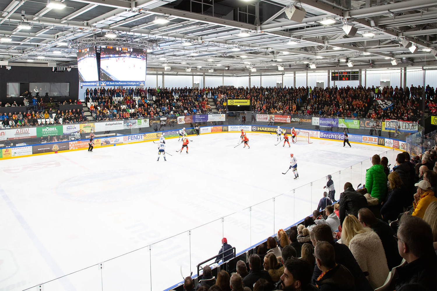 The new construction of the DEL2-suitable, completely covered ice stadium was built in the immediate vicinity of the previous stadium area at Jordanpark. The special feature of the new professional ice hockey stadium is its multifunctional use. In addition to ice hockey, figure skating and public ice skating, dry sports such as handball, basketball, boxing, judo or dance sports can also be carried out in the stadium. At the same time, the arena can also be used as an event hall for trade fairs, conferences or music events.