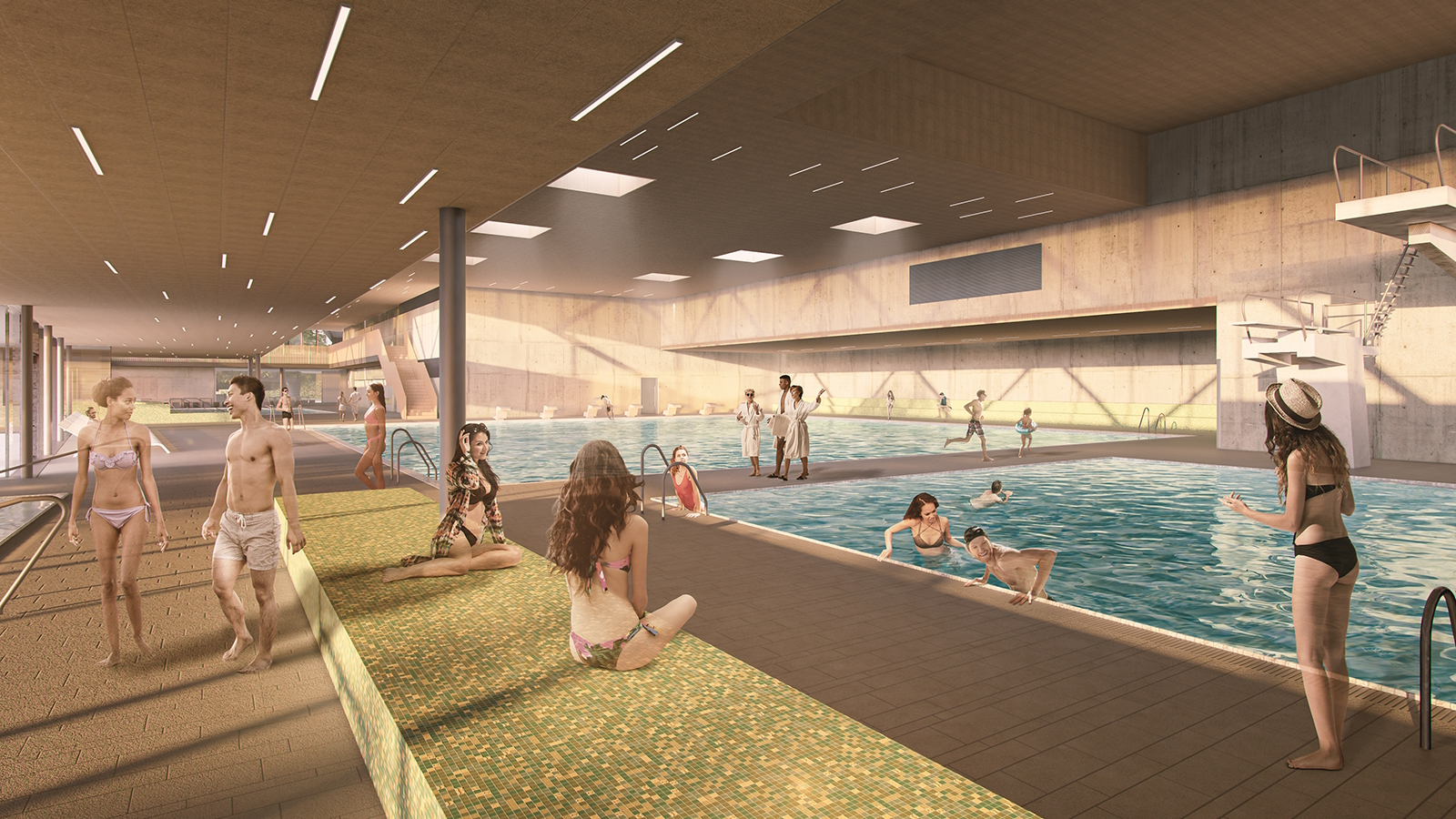 By merging the indoor and outdoor pools, a combination pool is to be created that meets future requirements both in terms of atmosphere and on a functional and technical level. The supplementary components of a sauna area should also be taken into account. This would allow better use of synergies that increase the attractiveness of the combination pool.