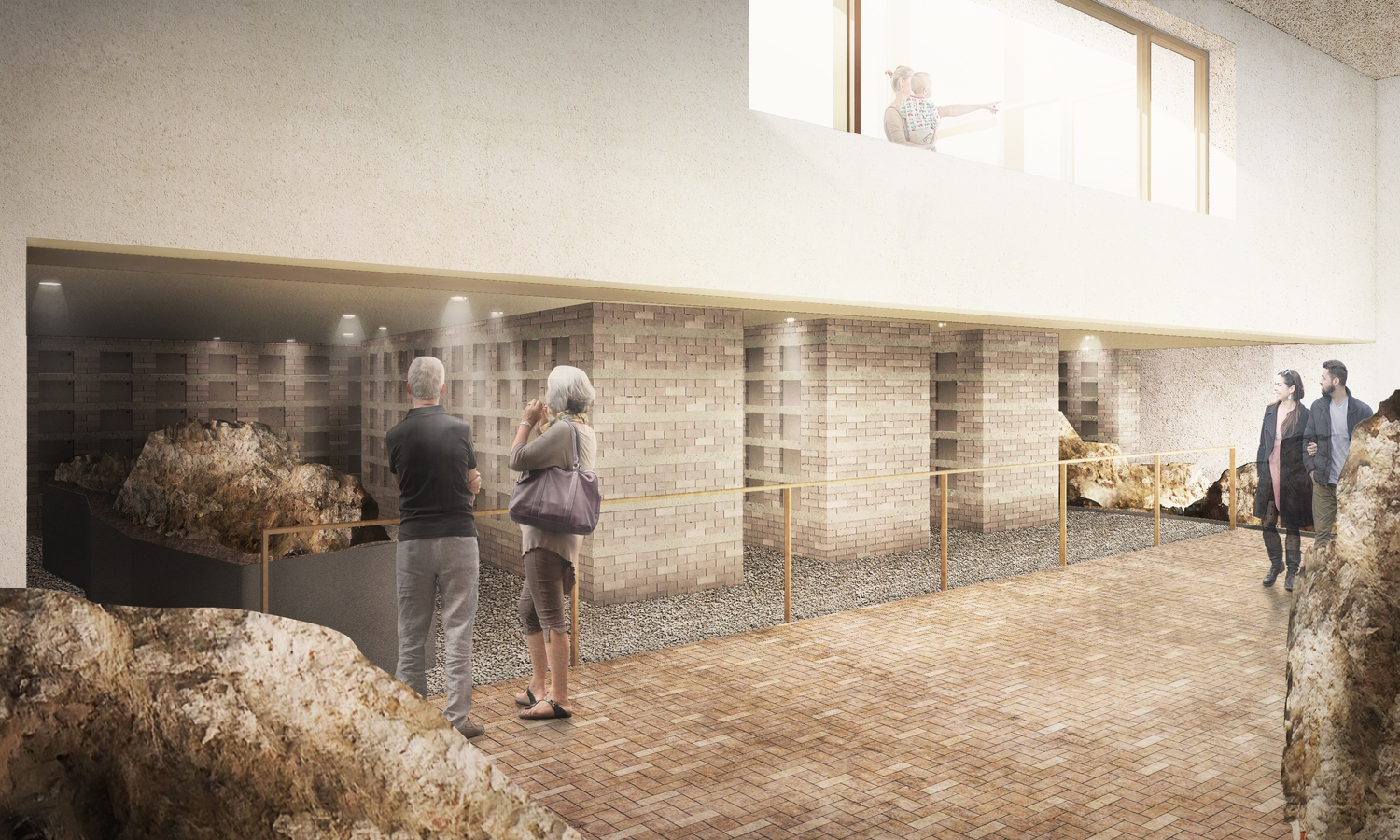 In addition to exhibition areas, a show workshop and a show collection are also planned. In the basement, a large part of the bones of the first Berliners recovered during the excavations at Petriplatz will find a dignified final resting place in an ossuary. The first construction phase of the outdoor facilities (public square area) is part of the project.